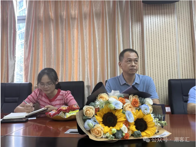 会上,张炎汝满怀敬意地为谢群辉送上一束鲜花。这束鲜花承载着学校对谢群辉多年辛勤耕耘的深深感激,更是对他将青春奉献给教育事业的崇高敬意的生动体现。