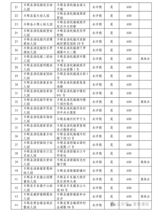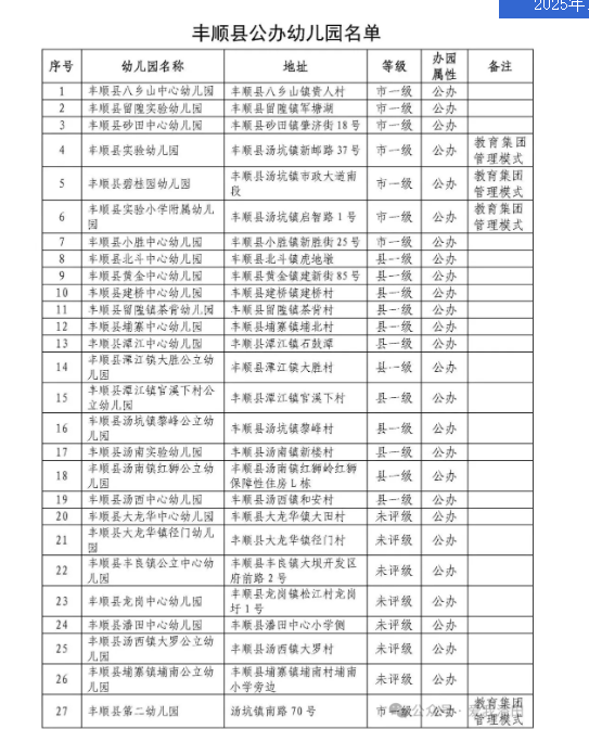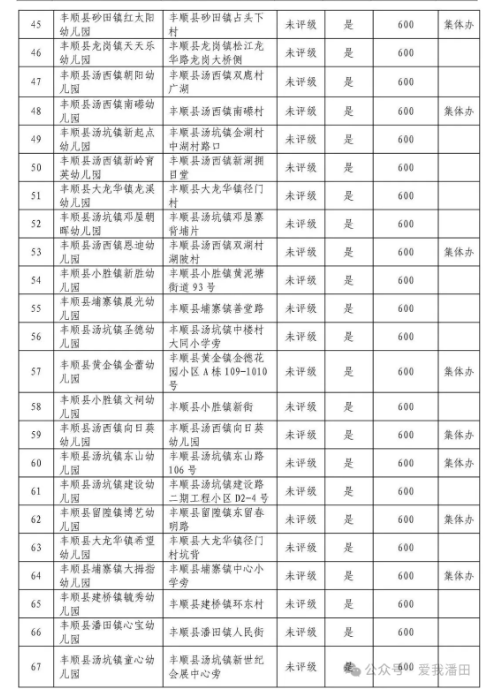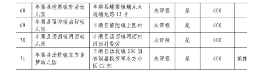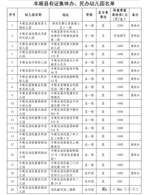 关于公布丰顺县公、民办幼儿园白名单及保教费标准的公告