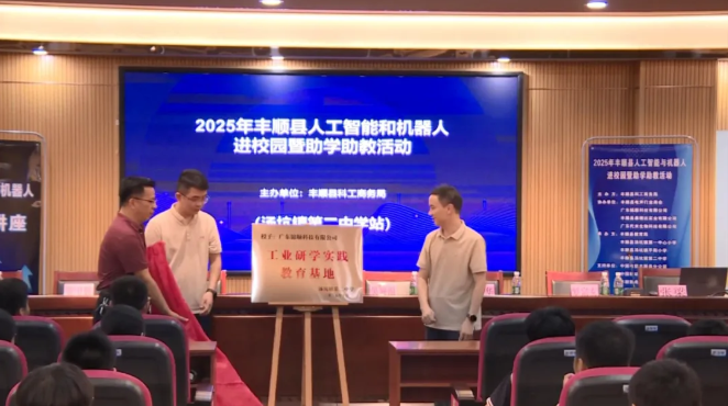 当天下午,活动在简洁庄重的授牌仪式中开启。爱心企业向学校捐赠了办公与教学物资,用实际行动为校园科技教育“添砖加瓦”,学校则为企业授予“工业研学实践教育基地”牌匾,标志着政企校三方协同推进科技教育的合作机制初步建立。