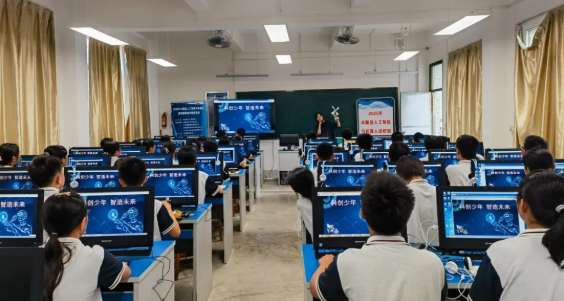 紧接着,人工智能与机器人专题讲座火热开展。一间教室中,讲师结合丰顺本土智能电声设备案例,用PPT、视频讲解技术趋势,让学生感受到科技就在身边;另一间教室,讲师手把手带领学生编写简单代码,亲身感受指令如何赋予机器“思考与行动”。期间穿插的互动环节更是将学习的乐趣在教室里充分传递。