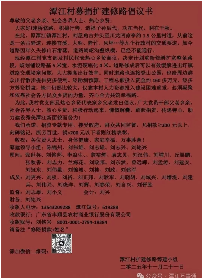 潭江村募捐扩建修路倡议书