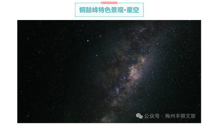 在铜鼓峰的峰顶仰望星空,璀璨的银河横跨天际,每一颗星星都讲述着属于夜晚的故事。无数观星爱好者慕名而来,感受、记录这里仙境般的景色,天空与大地交织,星光与我们同在。