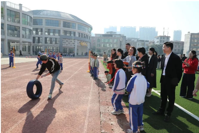 运动场地上,个人体育竞赛、趣味团体赛、体能团体赛及亲子比赛等活动同步开展,展现了学校重视体育教育、增强学生体质的办学理念。