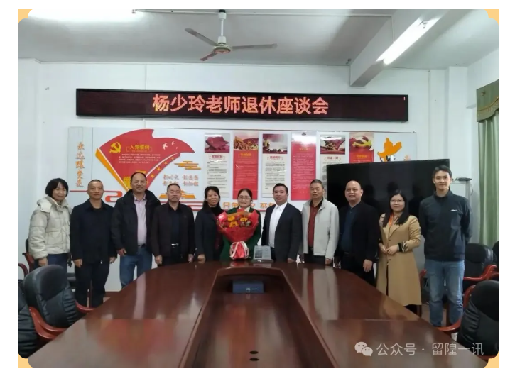 12月29日,球山中学于西校区张芳荣大楼三楼会议室隆重举行杨少玲老师退休座谈会。本次座谈会由工会主席江远望主持,党支部书记、校长易向荣及全体行政领导、教师代表共同参加,为深耕杏坛的杨老师送上最诚挚的祝福与敬意。