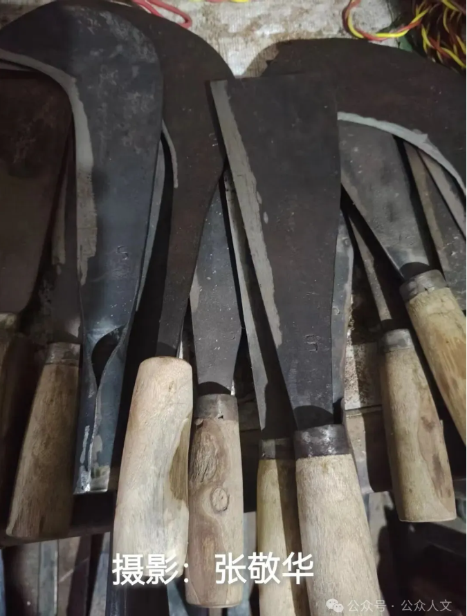 附近乡镇的朋友,也会循着冯师傅的名声,来铺子里选刀具,有人拿着用了十几年的旧刀来翻新,他也从不嫌麻烦。他会先把旧刀放进火里重烧,再用锤子矫正变形的地方,最后磨出锋利的刃口。