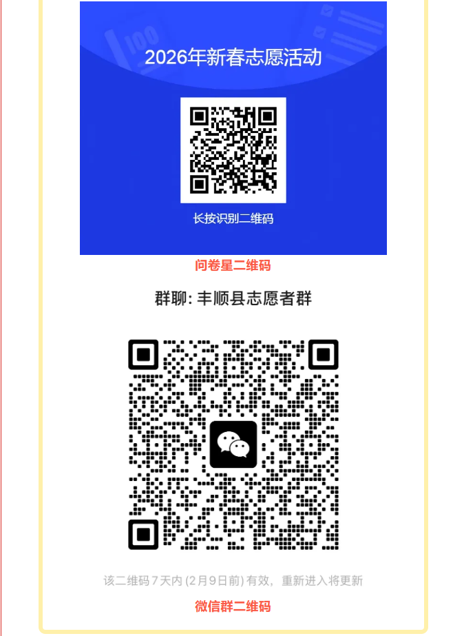 请有意愿报名参加的小伙伴扫描下方问卷星二维码,提交报名信息并及时加入对应志愿活动群,后续活动通知将在群内发布。