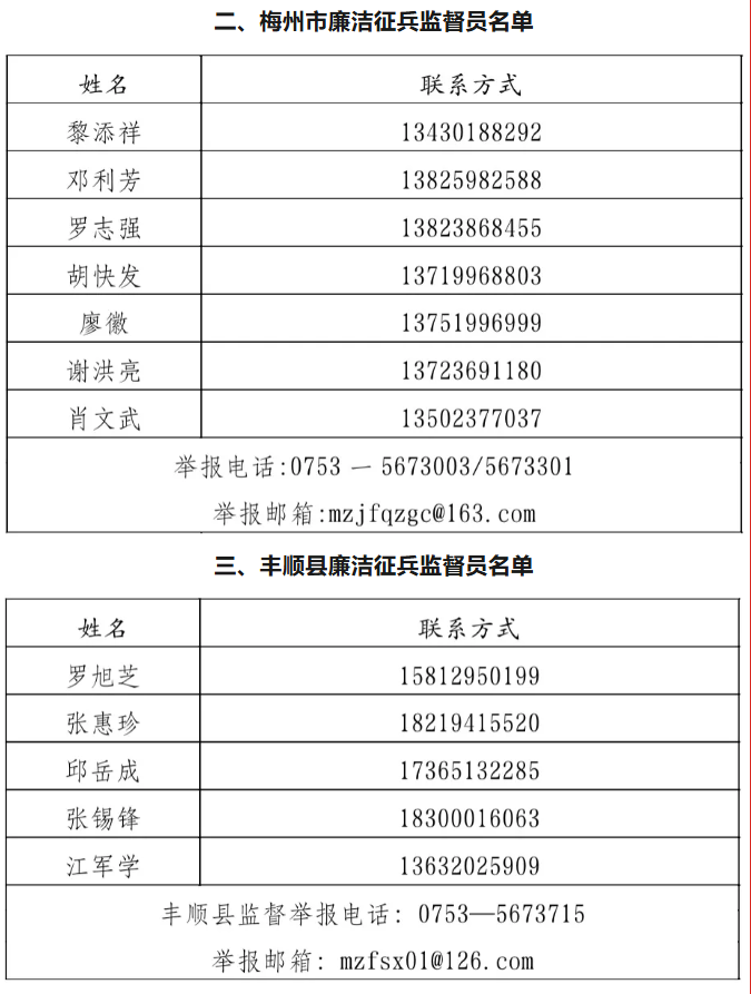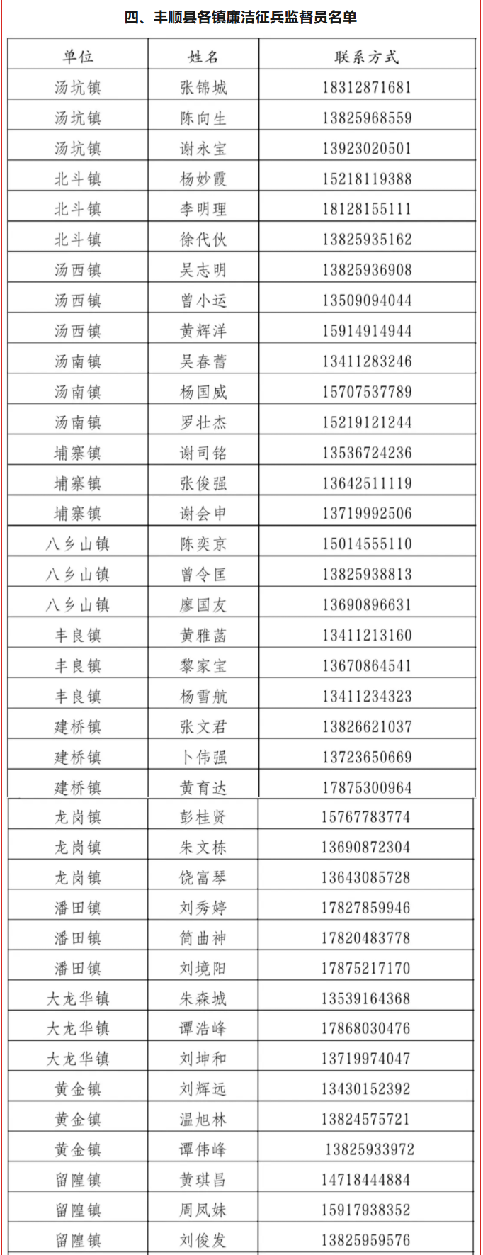 2026年上半年征兵报名已开启,为严明兵员征集纪律规定,筑牢廉洁征兵底线,增强征兵工作透明度,自觉接受群众监督,大力推进征兵工作公开、公平、公正,现将省、市、县、镇廉洁征兵监督员及监督举报方式予以公示。欢迎社会各界对征兵工作进行监督。