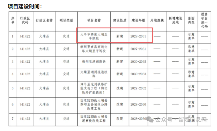 大丰华高速最新消息:大埔至丰顺段的开工时间