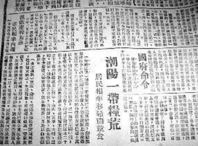 这是一张民国三十二年4月15日出版的《新华日报》,这张由重庆八路军办事处主办的报纸,二版有一条新闻《潮阳一带粮荒,居民相率移赣南就食》,这么写道:“潮阳一带粮荒已至严重阶段,潮阳县某村近半月已饿死百三十余人,每日结队上山摘树皮以充饥,目前各地居民相率移赣南就食者已达十万以上……”当年《新华日报》这篇报道所指的粮荒,即我们耳闻能详的1943年潮汕大旱灾。其惨状,如今八九十岁以上的老人仍记忆犹新。 这次大旱灾,是广东历史上最为严重的一次,当中以潮汕地区最为严重。据不完全统计,整个广东省“受灾死于逃亡、饥荒的达300万人”,仅潮汕地区的死亡人数就超过100万人。