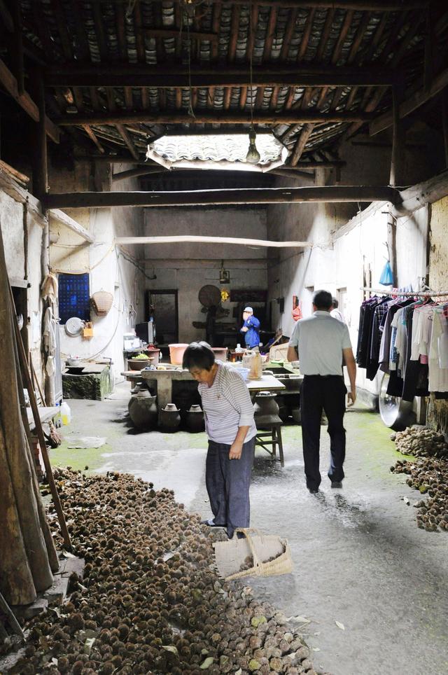 下到山脚的路口,有家饭馆却意外的热闹,当街是一般的铺面,谁知进到后院竟然是一家典雅华丽,颇有些档次的饭店,装修奢华、设施现代,厨房整洁,还带有茶园和花园,比城里的高档饭店还多几分自然的清爽与优雅。让我感到非常惊讶,招牌上却又很令人不解的低调标明“梁家小店”,进到接待大厅方才看见这是一家旅游接待饭店。在院子里溜达了一圈,转身回到路口的店铺,想来这是为普通人和一般游客而设的大众店铺吧。店里很热闹,几个女人正在不紧不慢,说说笑笑地的包着猪儿粑,厨师坐在一旁抽烟聊天。