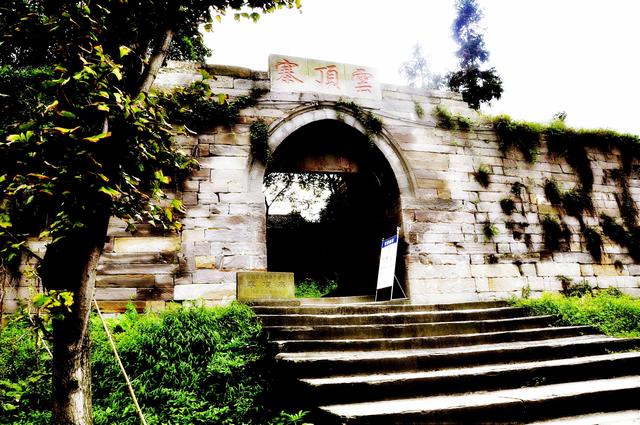然而之前,我竟然对云顶寨一无所知,听说是在隆昌县境内,一座建在山顶上,矗立在白云间的传奇山寨,这就更令我 神往。隆昌,素有“川南门户”之称,重庆直辖后,即成为“四川东大 门”。隆昌盛产黑山羊,羊肉、羊杂汤锅、烧鹅也早已闻名在耳,但隆昌亦盛产青石,其最具名气的还是“青石文化城”的赞誉,尤以县城内两大 石碑牌坊群而享誉华夏。而透过石牌坊后的城门洞口,在石牌坊和古驿道的远处,隆昌城外约20公里的山野深丘之地,还隐藏着一个名声显赫的神秘山寨—云顶寨。