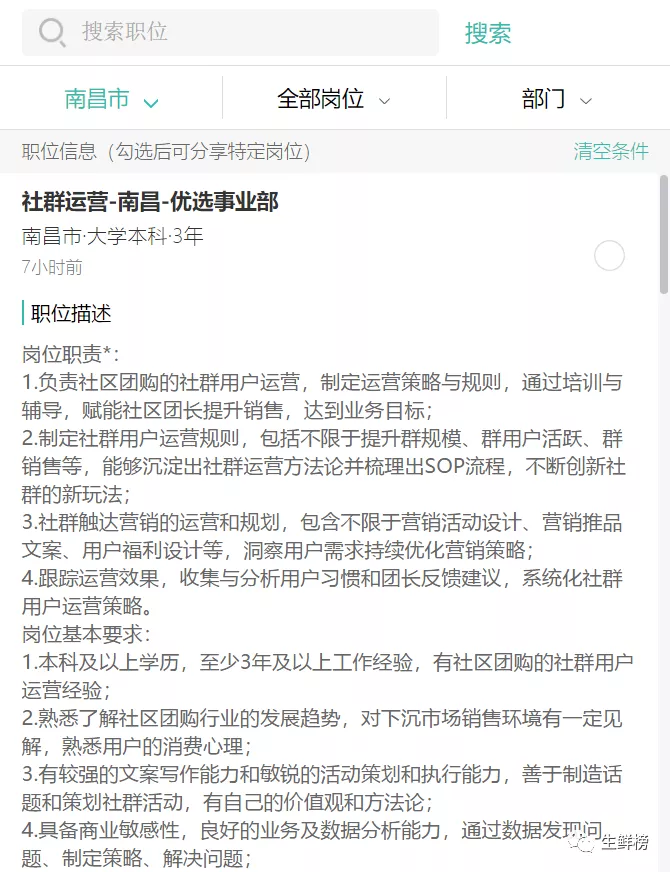 据悉,美团优选正在紧急招募社群运营、团长等相关岗位,将在广州、武汉、成都、南昌、佛山五地开城。美团优选组建精兵强将,大肆开城,赛道战火愈演愈烈!