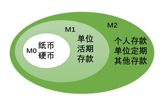 把一个国比喻成一个家,评估家庭财务状况,M0就是手上立刻就能用的钱,M1代表需要通过银行渠道支付的钱,M2代表属于你但要拿出来变成M0或M1才能用的钱。