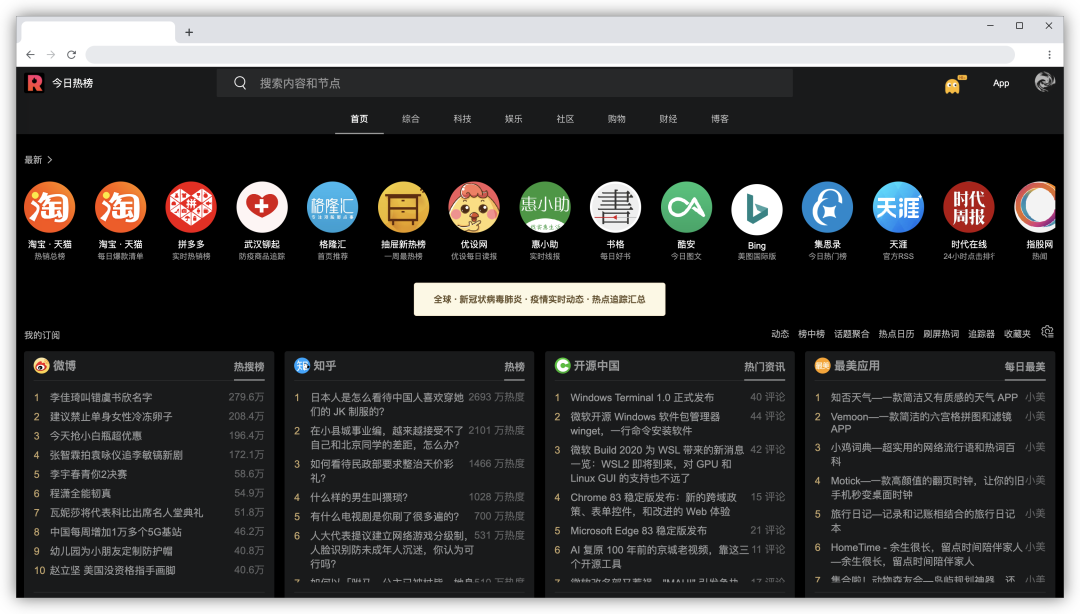 今日热榜提供各站热榜聚合:微信、今日头条、百度、知乎、V2EX、微博、贴吧、豆瓣、天涯、虎扑、Github、抖音…。追踪全网热点、简单高效阅读。