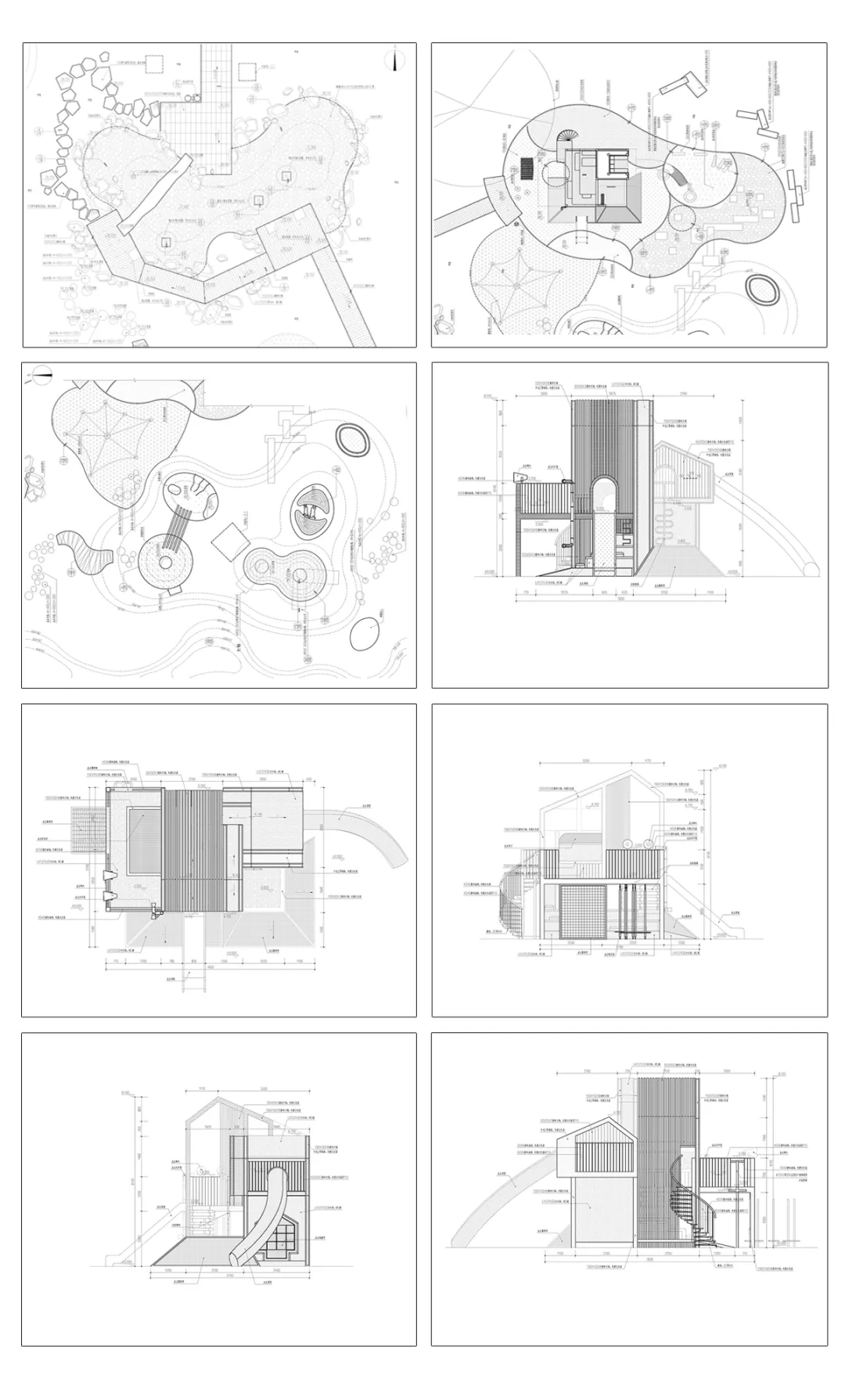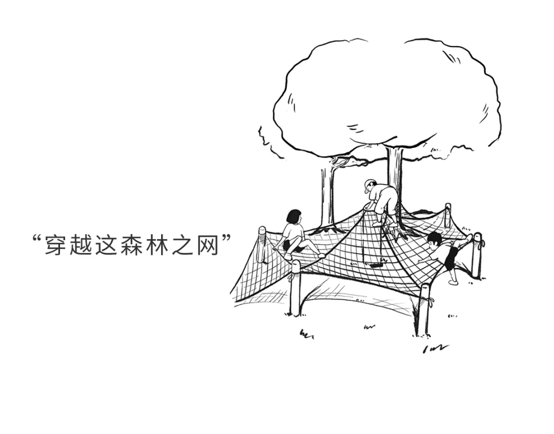 This is a very special design trip. When the design landed, the designer came to the site of the base, just like the scene in his mind before. He played with the children for a whole day. He jumped up and down the tree house with them, ran freely in the green slope, called loudly in the echoing mounds, and crossed the secret passage of vines with the children In, as if back to their own happy childhood…