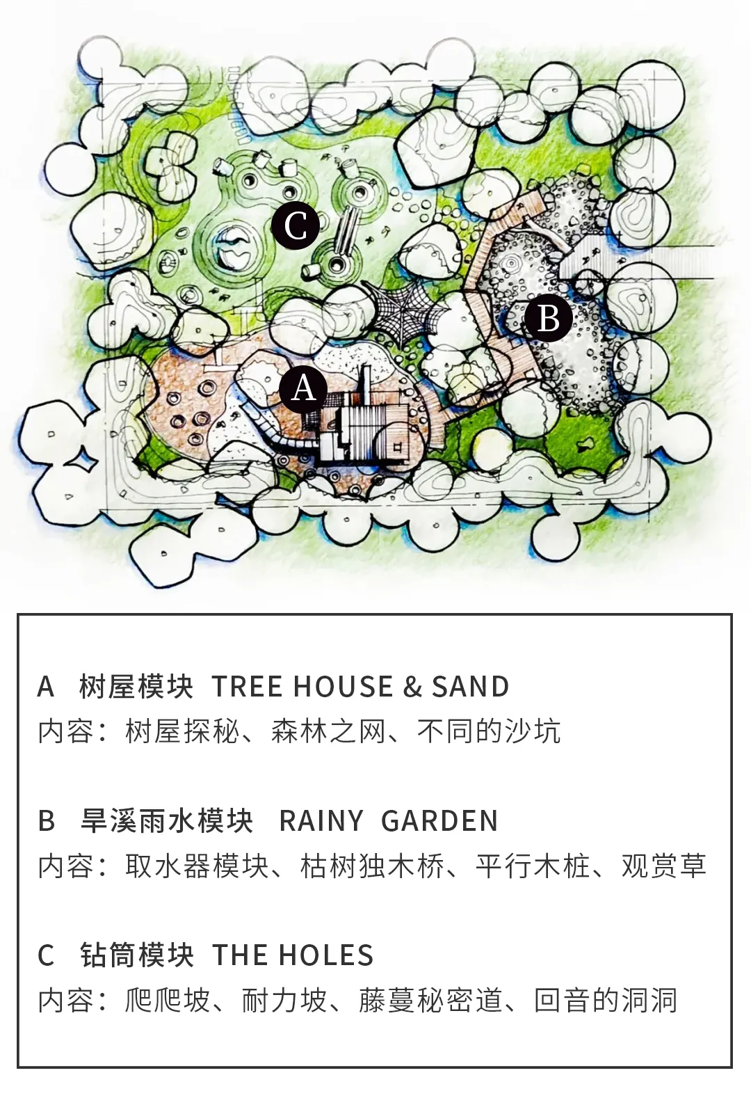 In order to solve the common problems in the above-mentioned community landscape design and make a breakthrough in children's playground, Vanke Construction Research Center invited us to try to land and experiment a children's playground with the theme of “in nature” – children's nature module.