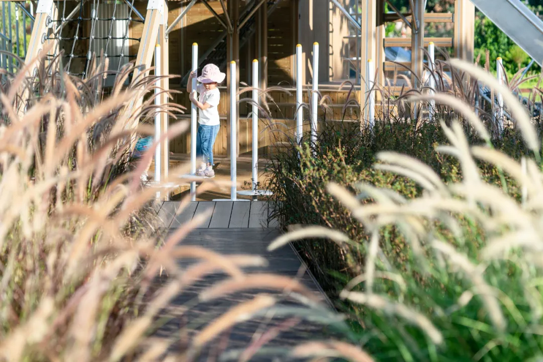Undoubtedly, the experimental base of Dongguan Vanke construction and Research Center provides an ideal place for landing such children's venues. With the R & D foundation of children friendly community growth products developed by Vanke and started in 2016, Linde designers were very excited when they received the design task of “children's natural module” — children freely shuttled in the natural ecological field, playing, and all kinds of beautiful scenes of games were no longer just the beautiful ideas in the designer's mind For example, all kinds of natural possibilities explored in long-term research and development have finally got the opportunity to practice!