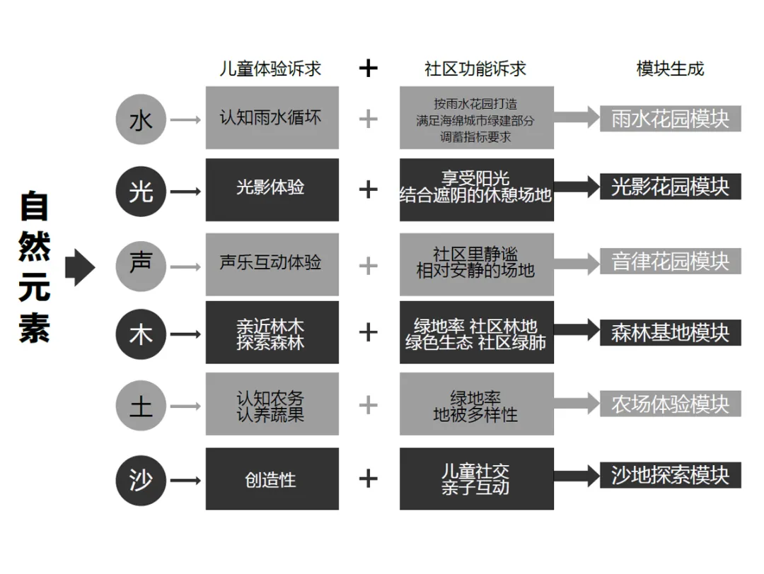 为了解决上述的社区景观设计中普遍存在的问题,在儿童游戏场地中有所突破,万科建研中心邀请我们一起尝试落地实验一个以在自然为主题儿童游戏场地——儿童自然模块。