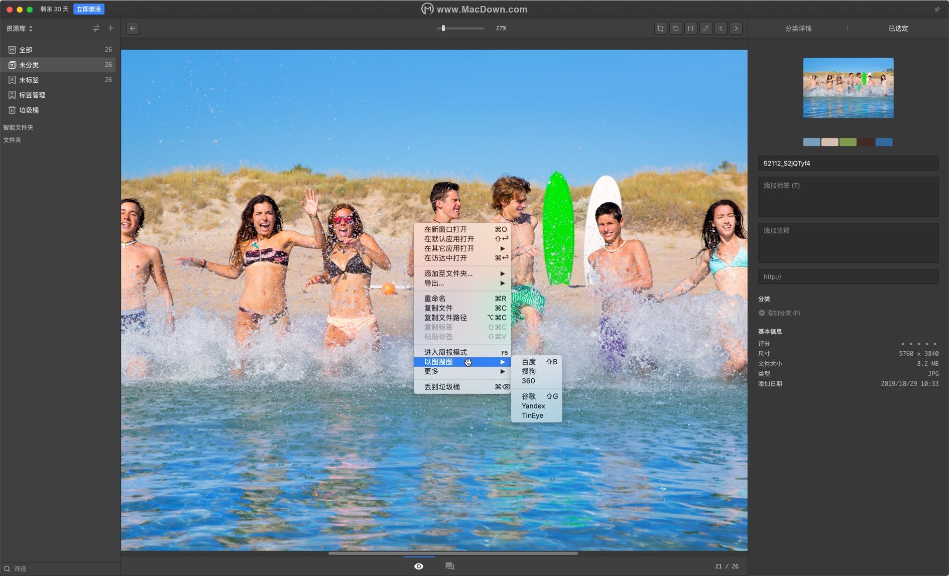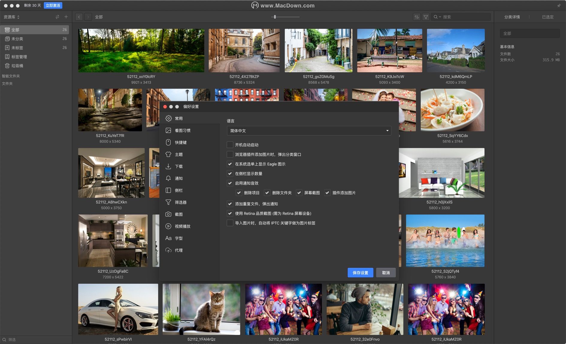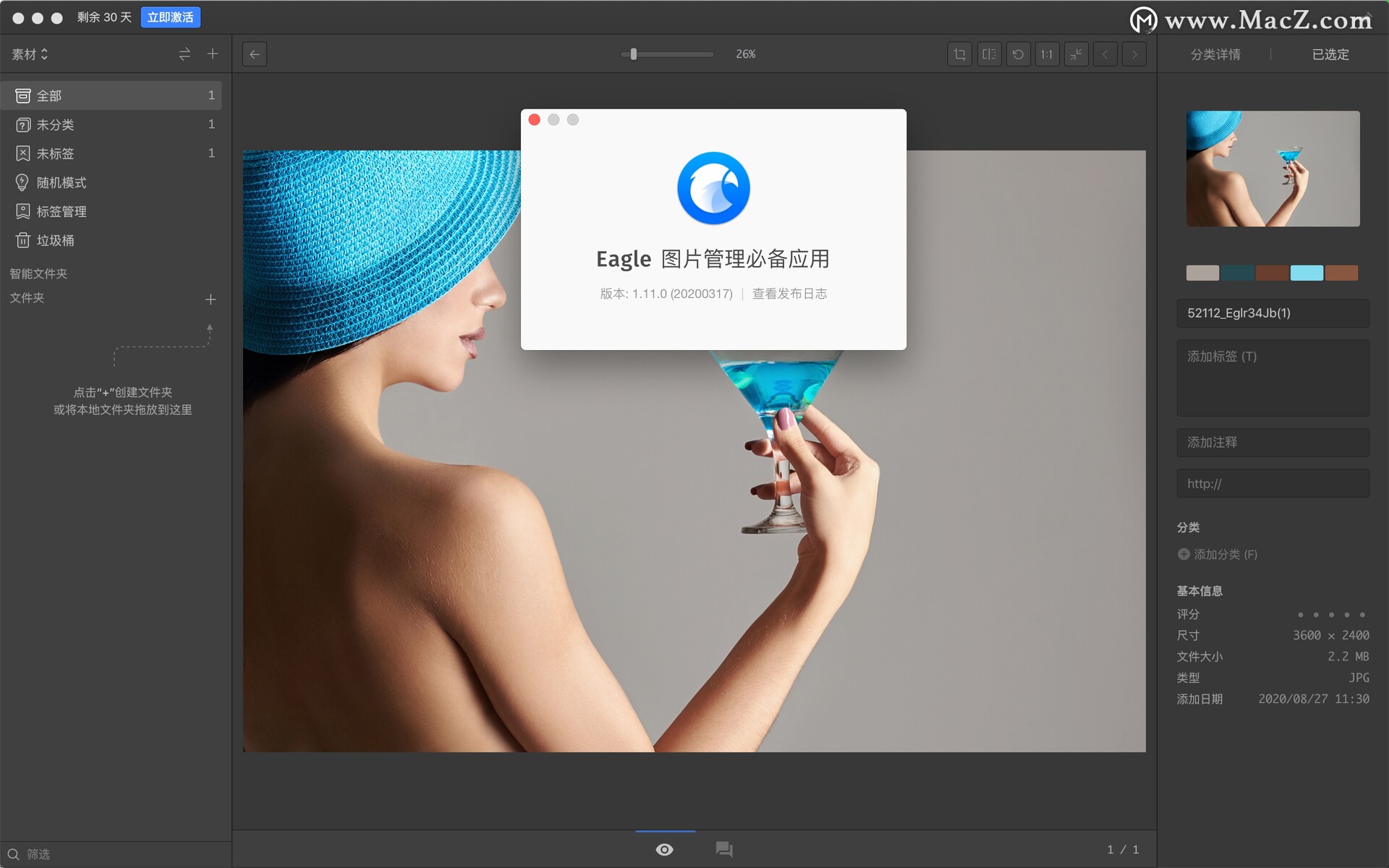 macOS上有没有专门用来管理图片库的软件?Eagle中文版可以帮助用户轻松整理图片,让你再也不用因为图片太乱而烦恼。eagle mac版完美结合图片收集、整理、搜索等三大功能,轻松完成图片整理、分类,迅速保存你喜爱的图片,让设计素材保持整洁,让你以更高效的方式保管您的图片,功能非常强大。欢迎有需要的朋友们前来Macz下载使用!