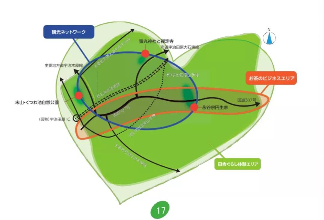 振兴局邀请著名景观设计师设计茶田,让出产抹茶的茶田成为热门景点,被评为京都府景观资产第一号,并加入“日本最美乡村联盟”,在2015年作为“日本茶八百年的散步道”被收录为日本遗产。