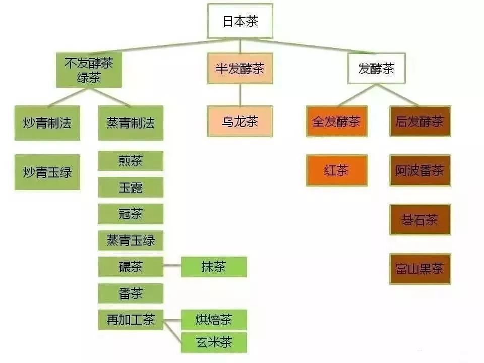 按照以下日本茶的分类,宇治茶以绿茶为主。其中,除了抹茶之外,雨露与煎茶也是其代表茶,都有其独自的生产技术以及流通与消费条件。