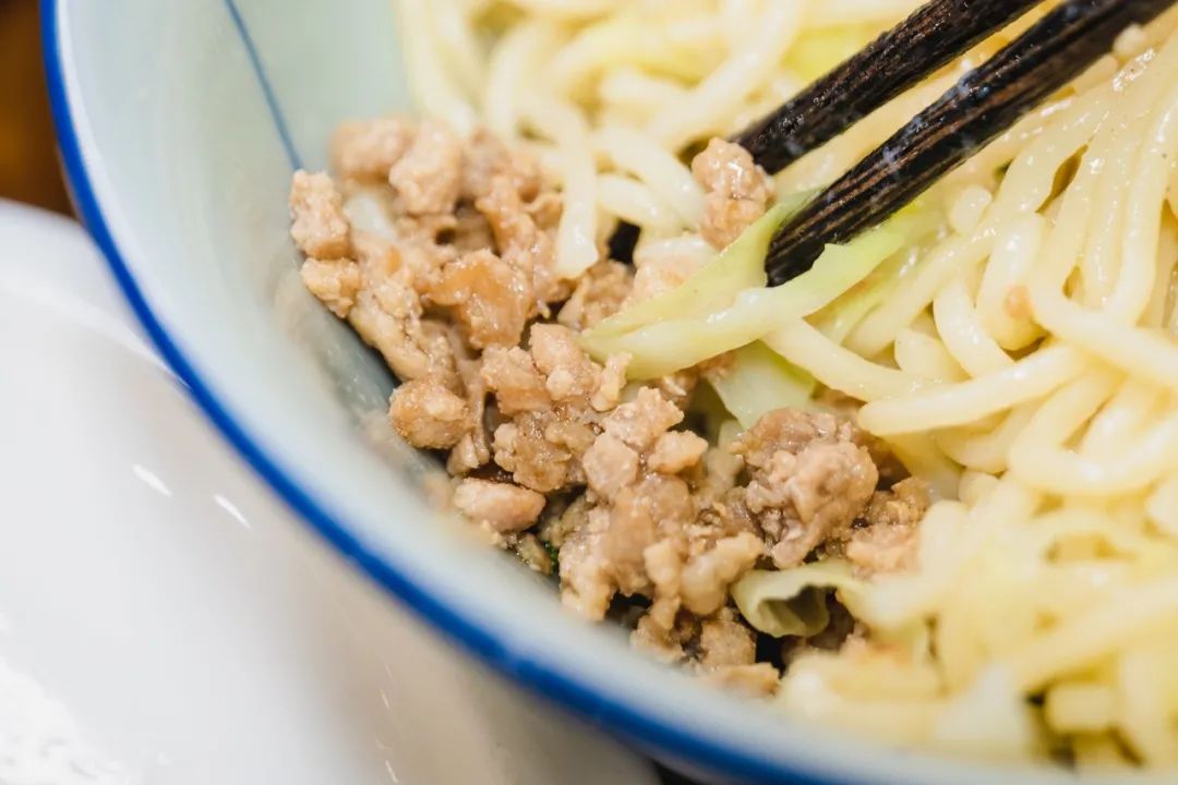 就有肉沫、葱花、猪油、椰菜丝作拌料。