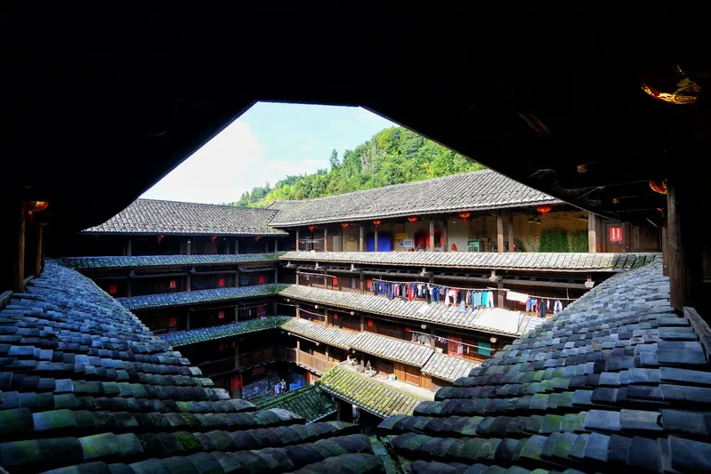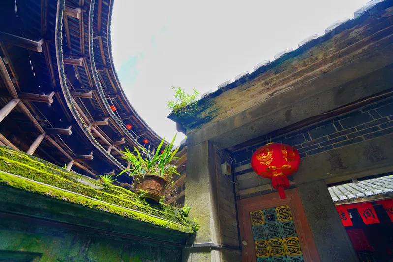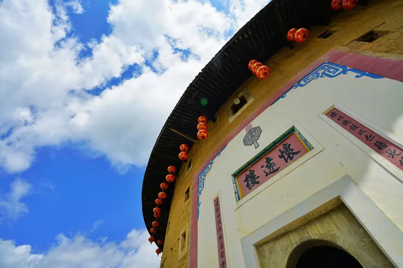 置身土楼中心,脚踏宽广圆地,头顶万丈高空,眼望蓝天白云。有那么一刻,以为这就是天空的全部。