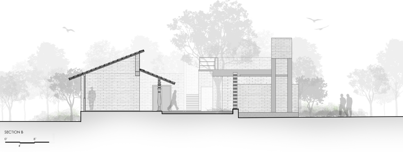 自然背景的微妙前景设计,可视化是让房屋融合并与自然环境进行对话,而自然环境是房屋的背景,而不是主导环境的主导特征。房子概念化背后的想法可以追溯到客户对有机农业的热爱。我们与收集古董的客户之间的热爱使我们开发出了一个可以满足他们兴趣的房屋,并且让房屋随着时间的推移有机地进化,而不是创建固定的固定空间。