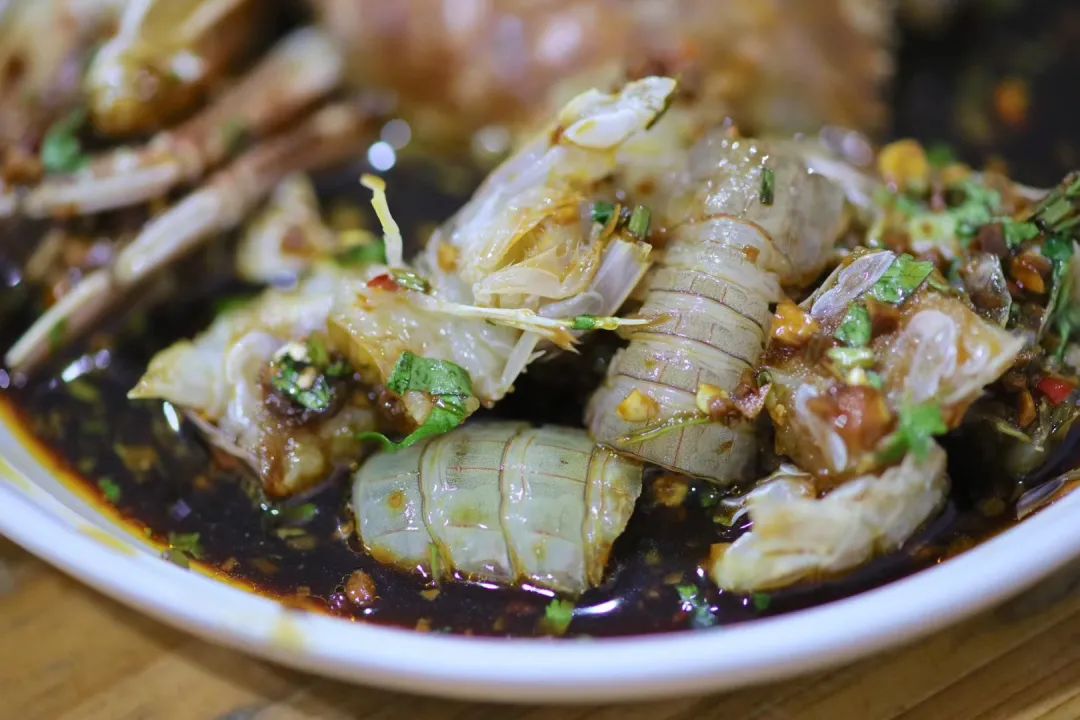 生腌的做法,是将姜葱蒜盐、芫荽、鱼露、辣椒、味精、酱油、香油等调料等按照比例做成腌料,既要渗入肉中,又不能太浓。将洗干净的活海鲜放进盆里泡半小时——两三个小时,就可以吃了。