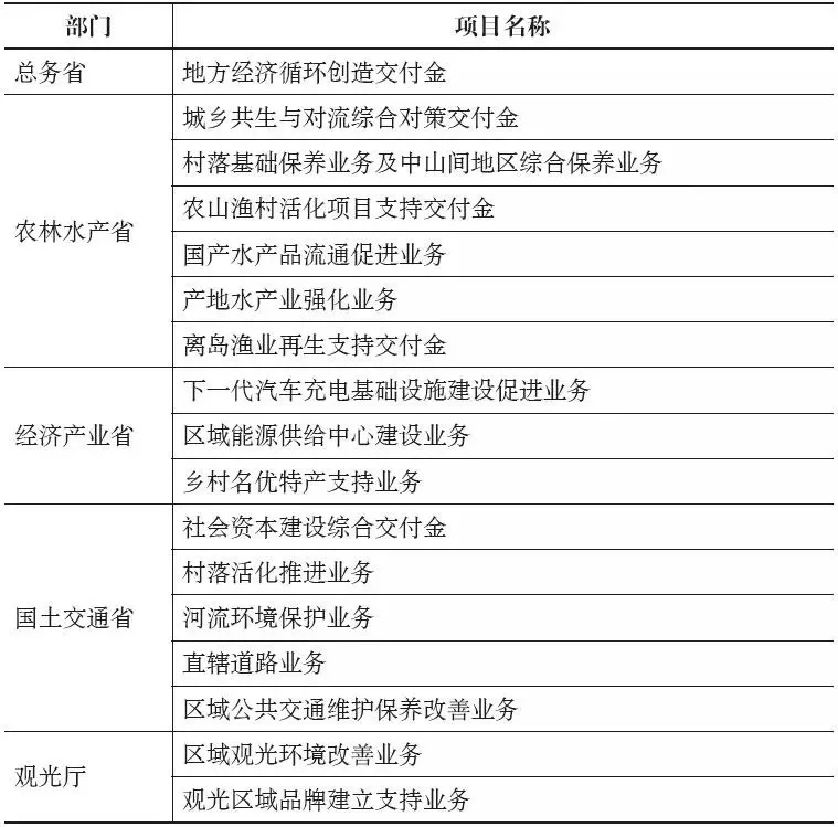 其中,代表性的如2007年由农林水产省设立的“农山渔村活化项目支持交付金”和2010年由国土交通省设立的“社会资本建设综合交付金”。