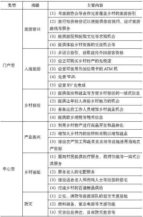 中心型乡村驿站作为乡村的核心,主要支持乡村中心地建设。其主要功能有以下三个方面(表3)。