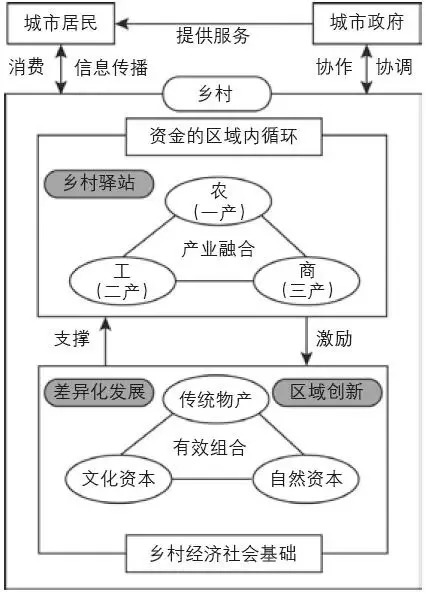 以驿站为主形成的产业融合机制有效地将城市居民增加而积累的资金更好地分配给乡村各行业,促进对农业生产资本和文化资本的再投资。