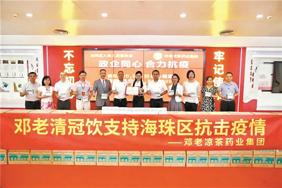 截至2020年12月,邓老药业联合新南方集团、合生创展集团、珠江投资集团、珠光集团等兄弟单位,已向国内17个省市及海外多个国家捐赠超百万份邓老清冠饮及其他产品助力抗疫,总价值超6000万元,直接受益人群超100万人次,受到政府、媒体及社会各界的好评和认可。中医药,惠及了更多的人。