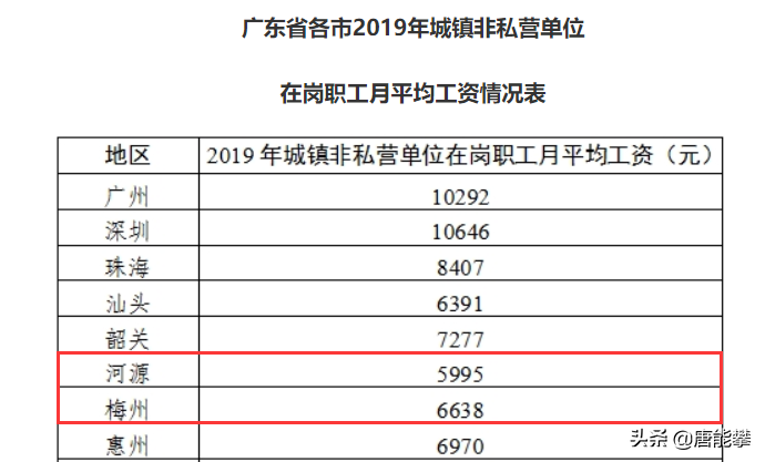 其中河源市城镇非私营单位在岗职工的平均工资为5995元,梅州的在岗职工月平均高工资为6638元,河源比梅州低643元,意味着私营单位平均工资大约分别为2998元和3319元,河源比梅州低321元。