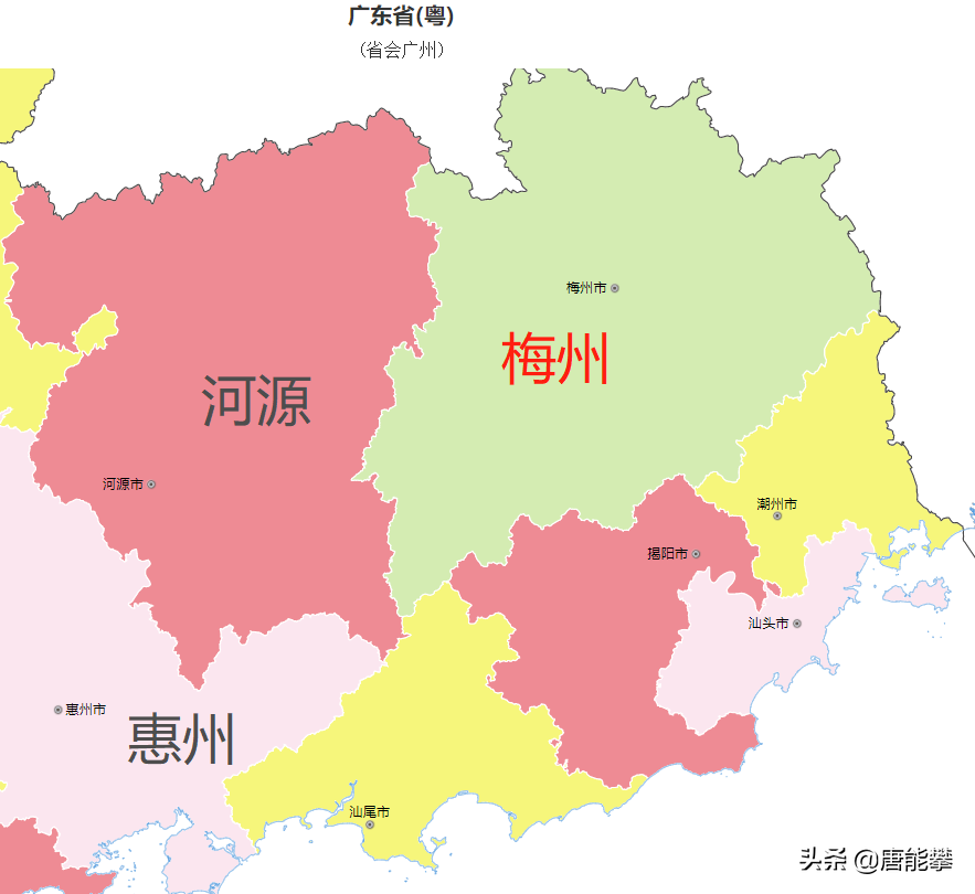梅州与河源是广东东北城市,面积较大,广东3、4位,山区较多,外与福建、江西接壤,内邻潮汕揭地区和惠州、韶关。