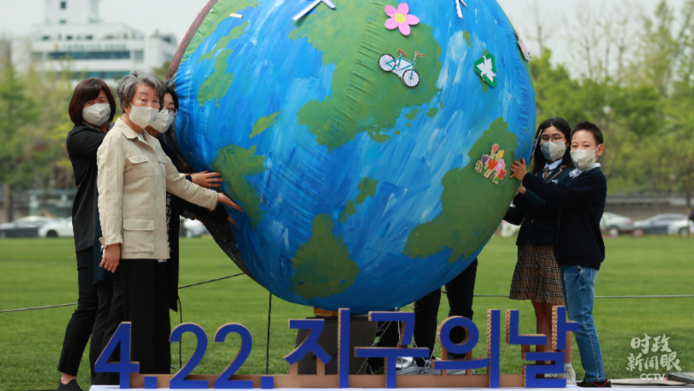 △4月22日,韩国首尔举行迎接“世界地球日”活动,呼吁防疫和环保。(图/视觉中国)