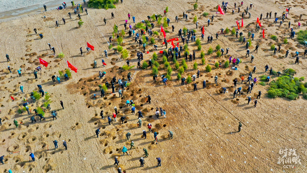 △4月15日,甘肃张掖万亩常青林基地植树现场。(图/视觉中国)