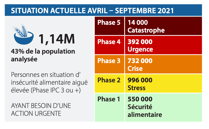《综合粮食安全阶段分类》(IPC)对马达加斯加的评估认为,4月到9月,预计当地处于“粮食不安全”阶段的人数将达到55万人、“压力”阶段99万、危机阶段73万、紧急状态39万、灾难阶段1.4万人,后三个阶段的114万人尤其需要紧急援助。预计到年底,这一数字将上升至131万。