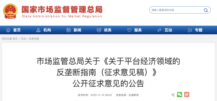 值得注意的是,在2020年年初征求意见稿里,国家市场监督管理总局首次将互联网业态纳入其中,新增互联网领域的反垄断条款,针对性地列明相关标准和适用规程。