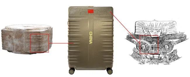 而行李箱的外形图案还采用了良渚文化的玉琮作为元素,通过东京奥运会,将此文化遗产带给世界,真是满满的“中华之美”啊~