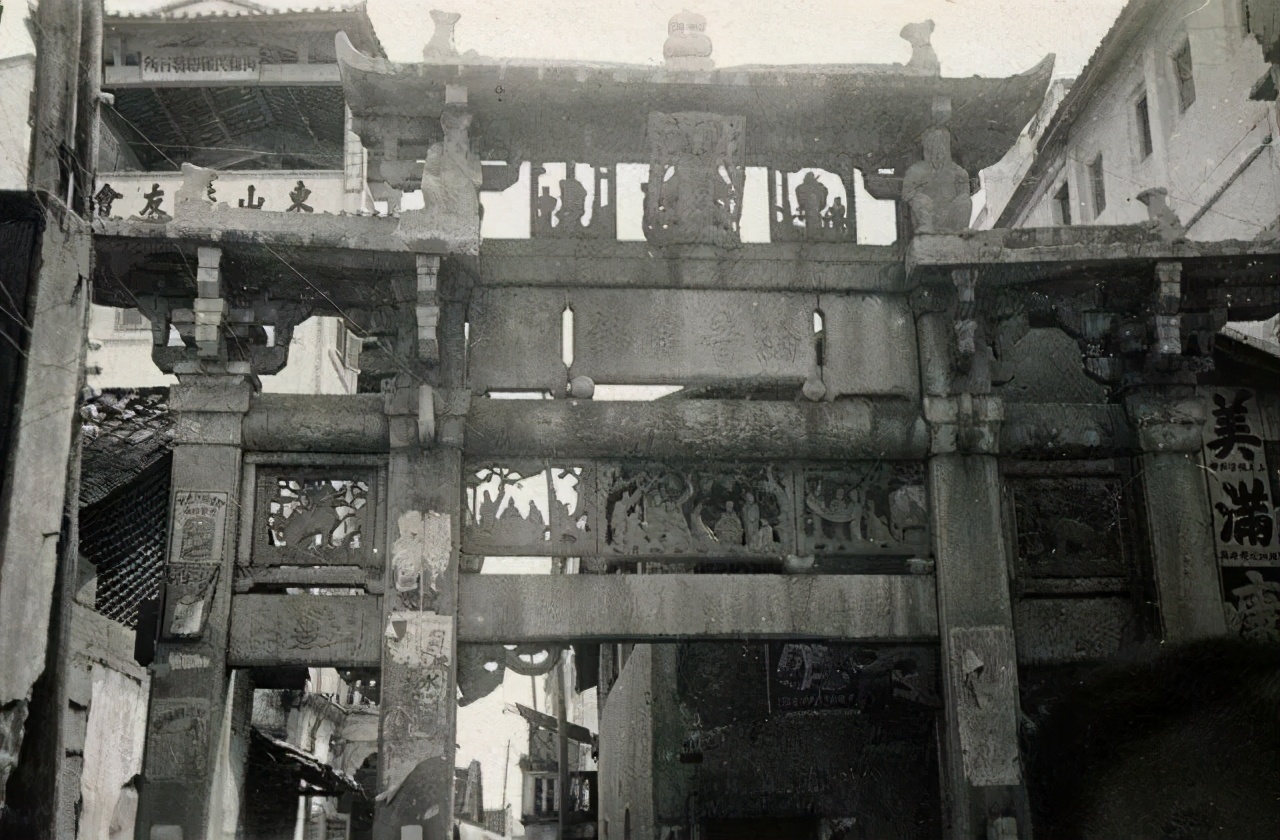 嘉应古牌坊(在今和平路),上还有东山中学校友会的旧址。