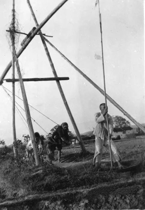 1936年汲水灌溉农田的农民。