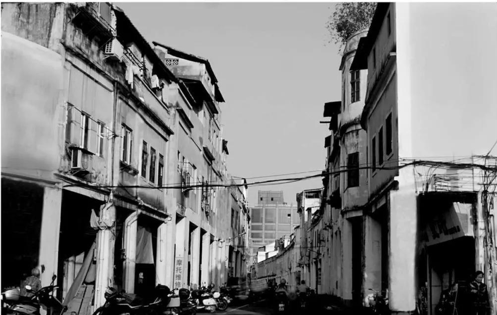 九十年代的凌风路,为纪念南宋宰相文天祥而得名,道路两侧多为中西混合式的骑楼式建筑,主要用于商业经营,也是梅州老城的起止点了。