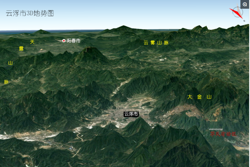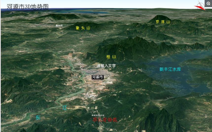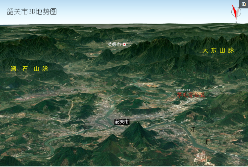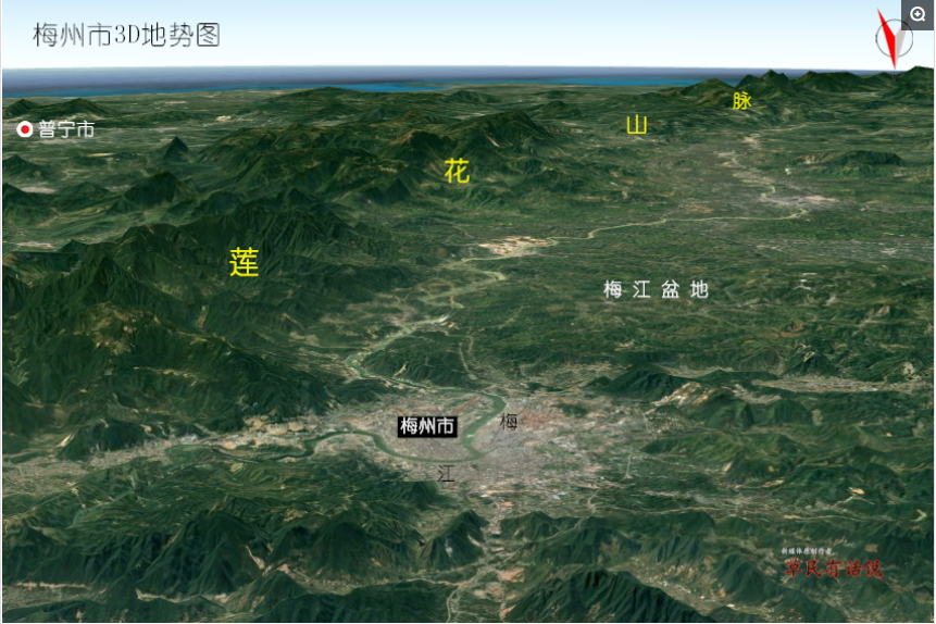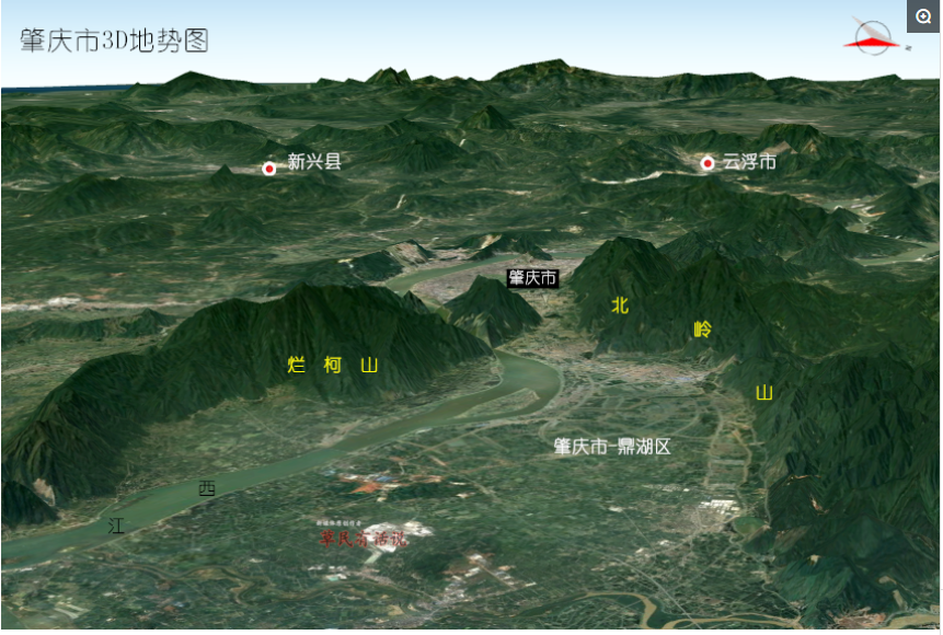 高清3D地图,广东省六大内陆市:清远、肇庆、河源、韶关、梅州