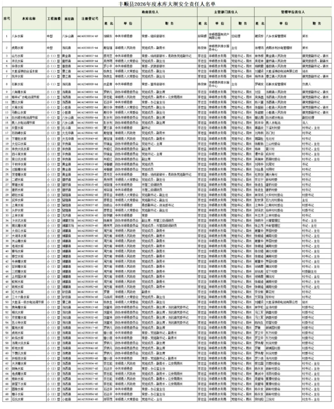 关于丰顺县2026年水库大坝安全责任人的公示