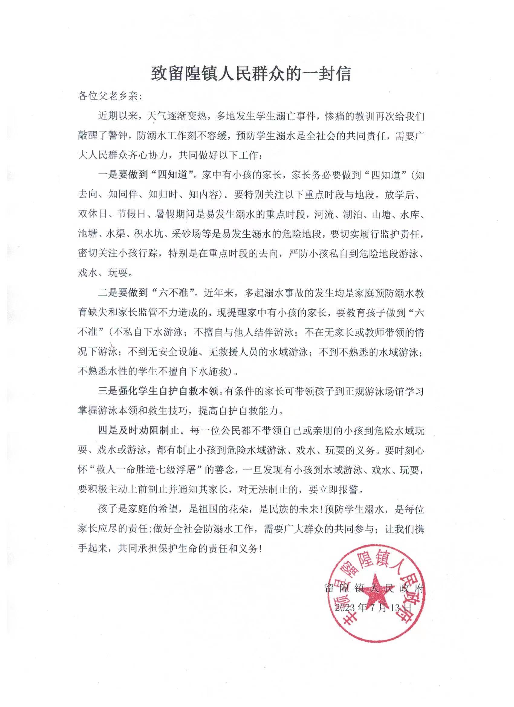 𨻧隍镇人民政府《致𨻧隍镇人民群众的一封信》